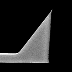 Furthermore, the visible apex tip is a tilted tip, so substantialtip angle decreases more when it is attached to a chip holder in yourAFM with certain tilt angle (probably, 5 to 20 degrees).The tip is effective for observing a rugged samples.